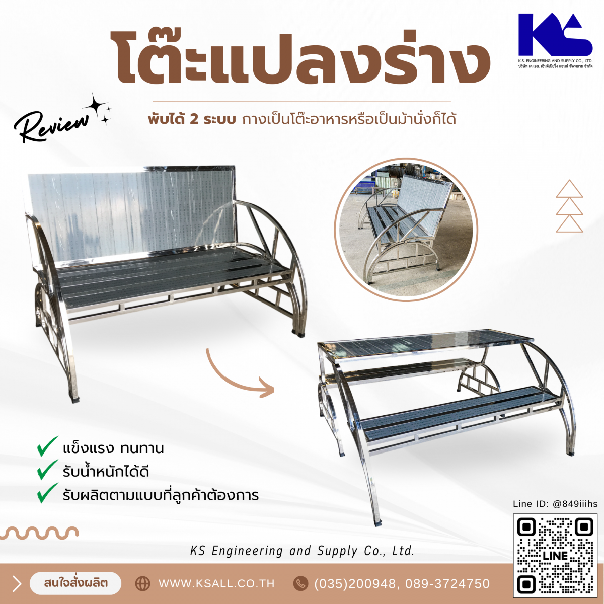 โต๊ะแปลงร่าง พับได้ 2 ระบบ กางเป็นโต๊ะอาหารหรือเป็นม้านั่งก็ได้ สวยงามทนทานแข็งแรง สะดวกปรับใช้ได้ง่าย เลือกรูปแบบ/ขนาด/สี ได้ตามใจ