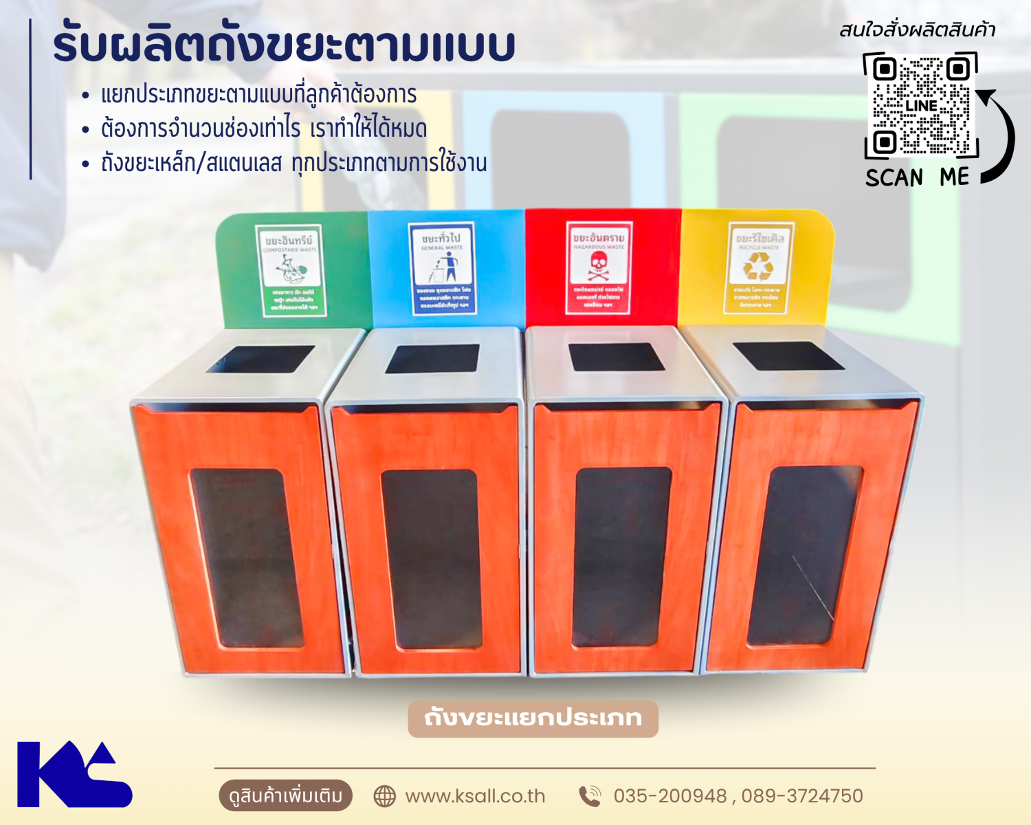 ถังขยะแบบแยกประเภท สามารถเลือกแบบแบบได้ หรือทำป้ายแจ้งประเภทก็ได้ ลูกค้าสามารถแจ้งความต้องการได้ค่ะ